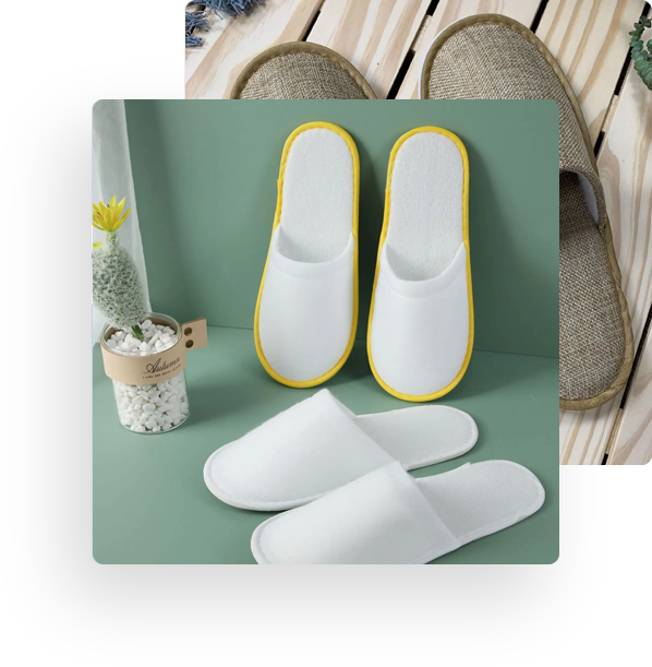 本廠生產(chǎn)賓館、酒店、度假村,航空,高檔會所,家居客房各種一次性拖鞋及工藝拖鞋為主的企業(yè),產(chǎn)品有高檔割絨、華夫格拖鞋,各種粗細毛巾拖鞋,通用一次性無紡絲拖鞋,產(chǎn)品品種頗豐,暢銷全國各地。